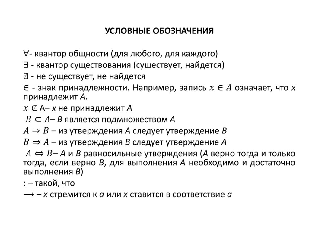 УСЛОВНЫЕ ОБОЗНАЧЕНИЯ