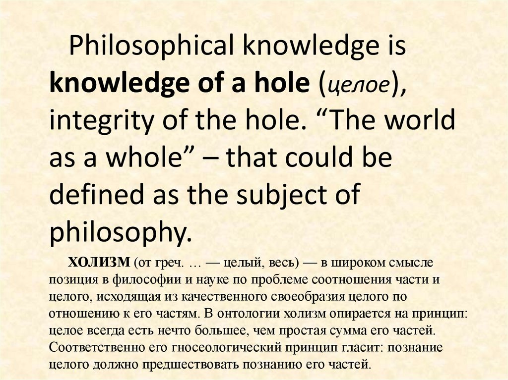 отношению к его частям. В онтологии холизм опирается на принцип: