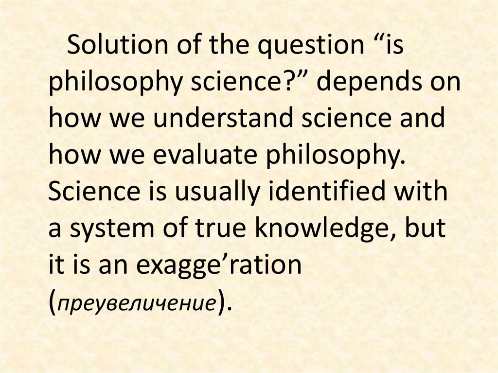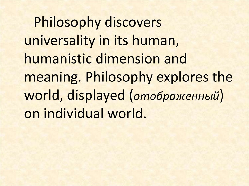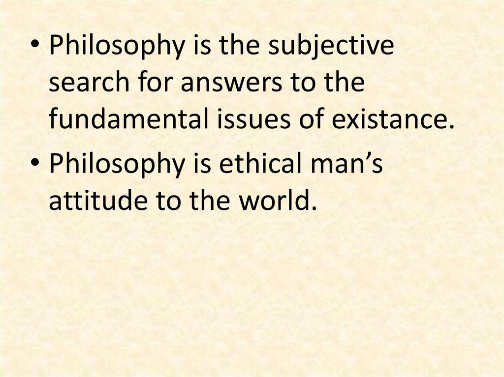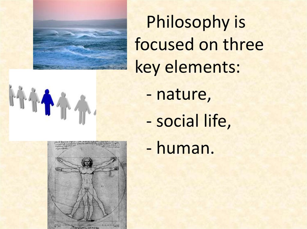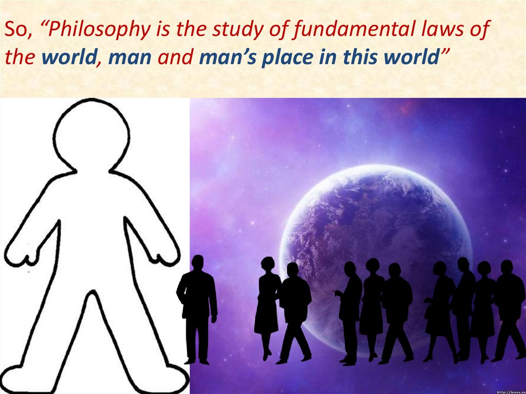So, “Philosophy is the study of fundamental laws ofthe world, man and man’s place in this world”