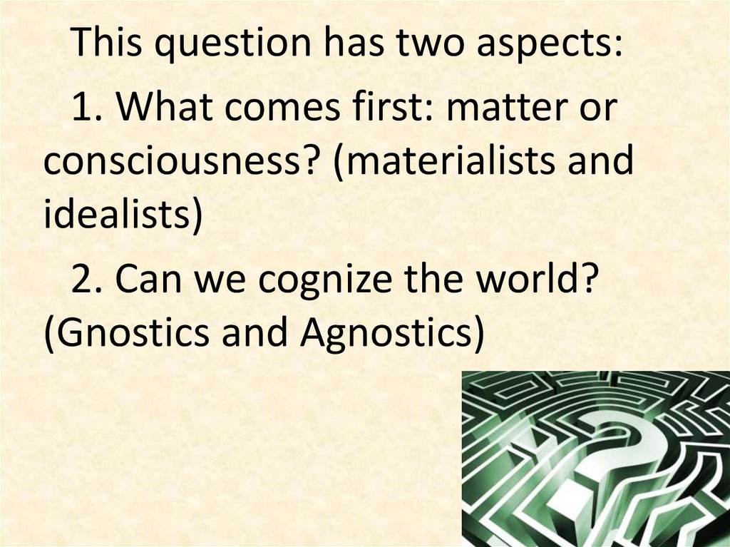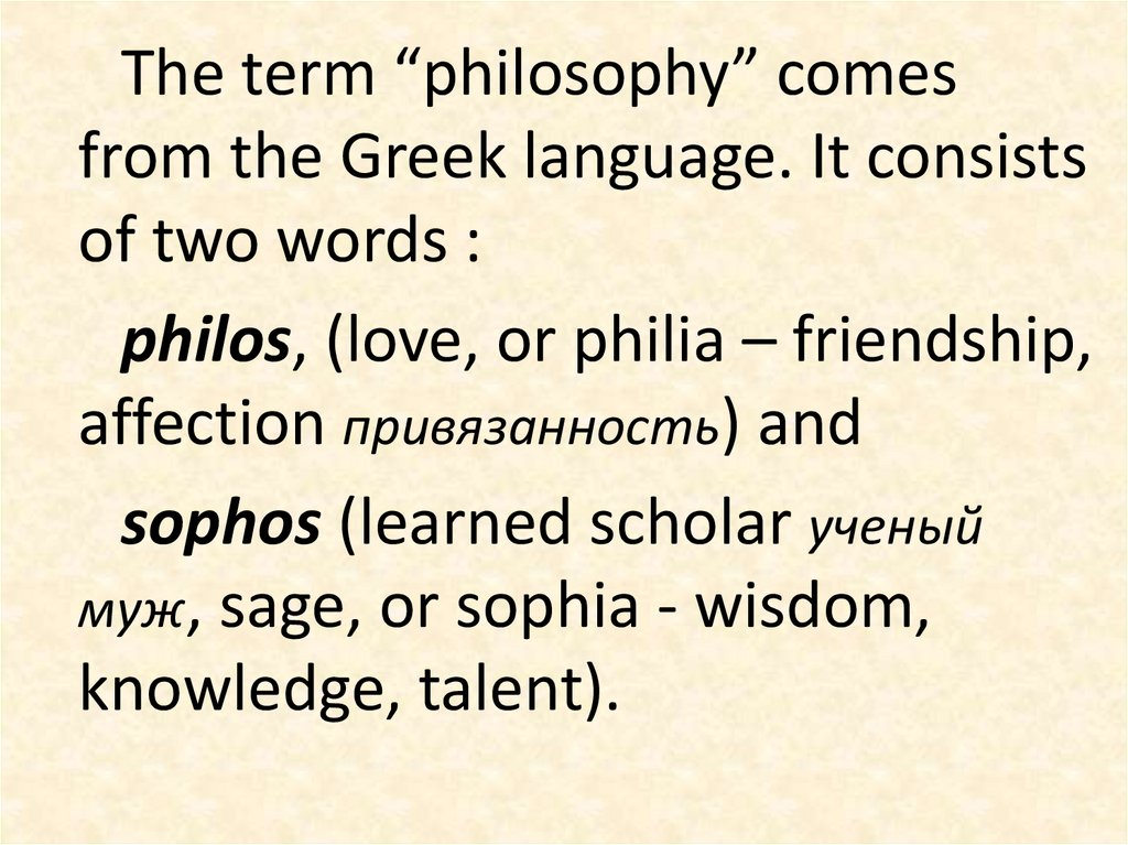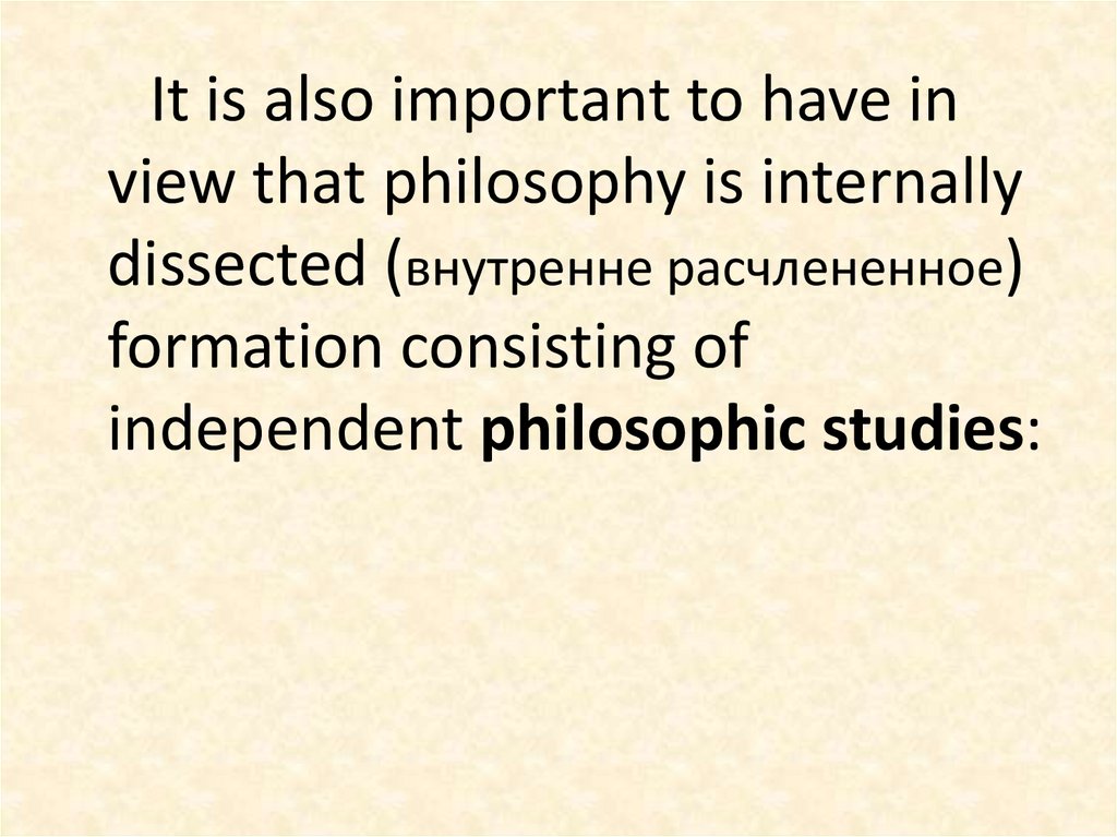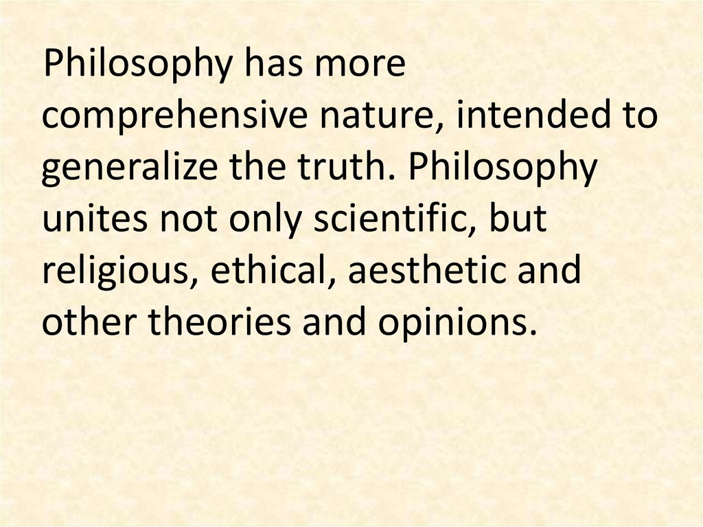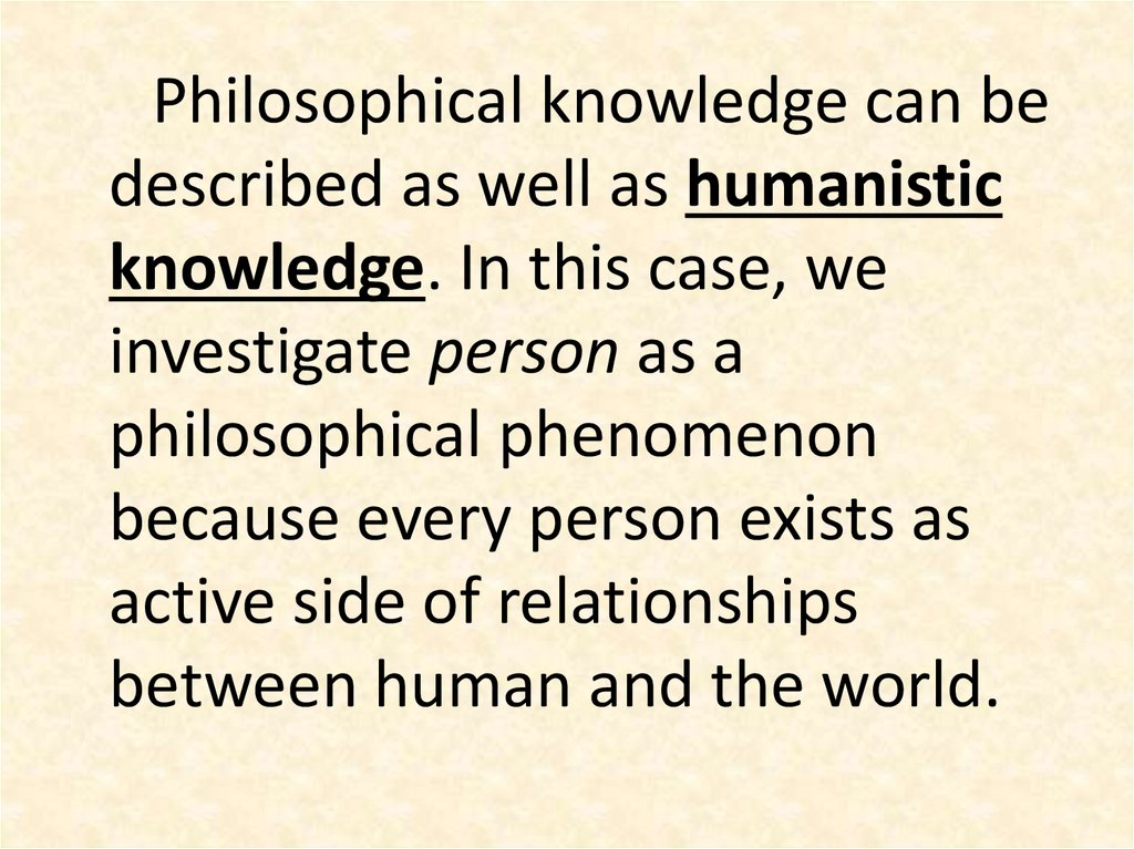 So, “Philosophy is the study of fundamental laws ofthe world, man and man’s place in this world”