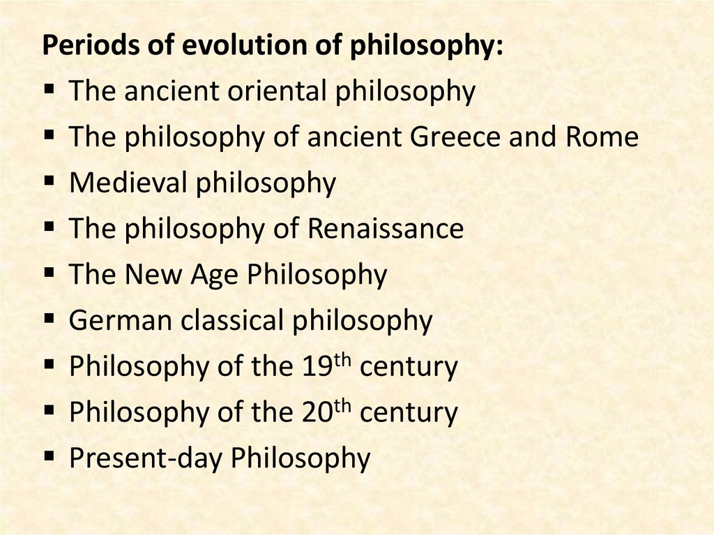 Periods of evolution of philosophy:The ancient oriental philosophy