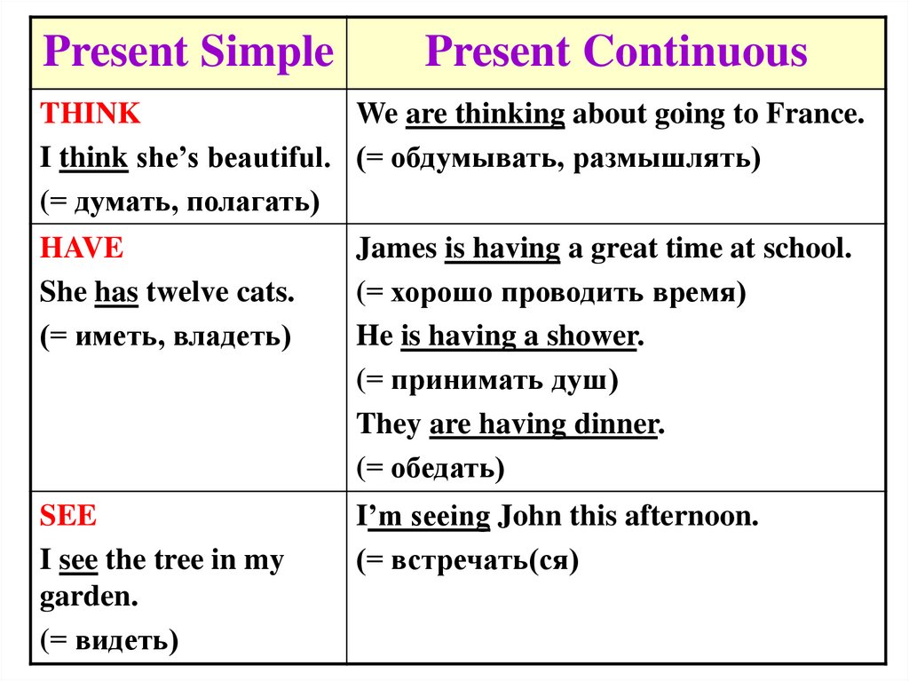 10. Некоторые из этих глаголов могут употребляться в Present Continuous, но с иным значением.