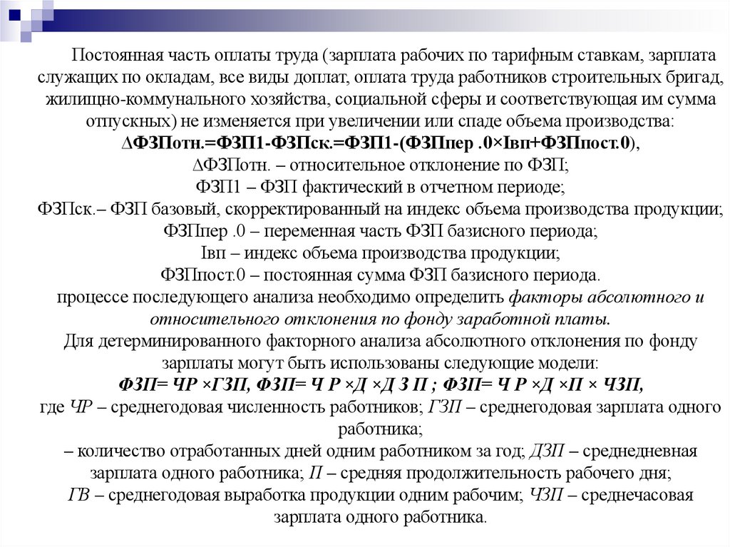 ФЗПпост.0 – постоянная сумма ФЗП базисного периода.