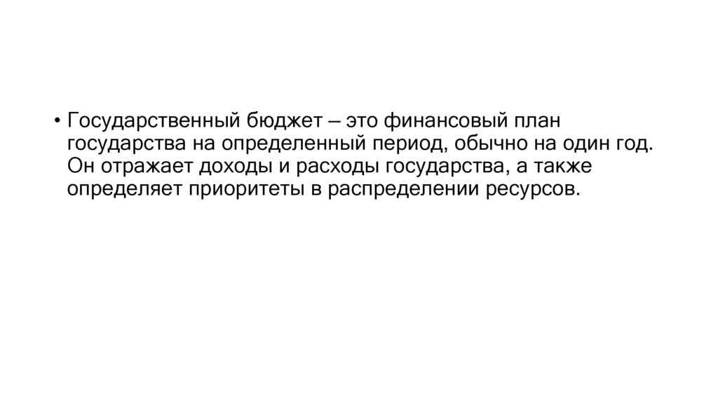 • Государственный бюджет — это финансовый плангосударства на определенный период, обычно на один год.
