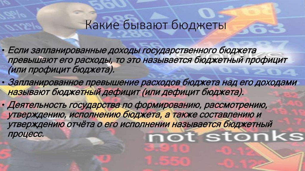 Какие бывают бюджеты• Если запланированные доходы государственного бюджета