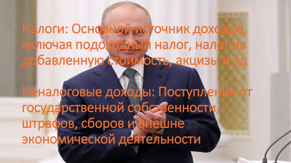 Налоги: Основной источник доходов,включая подоходный налог, налог на