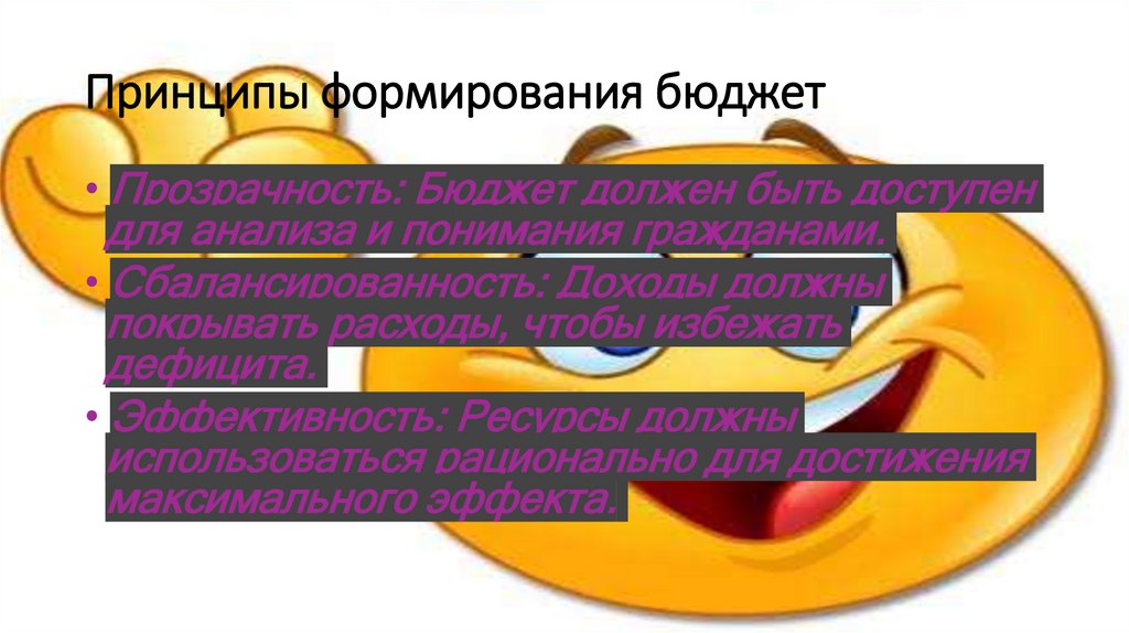Принципы формирования бюджет• Прозрачность: Бюджет должен быть доступен