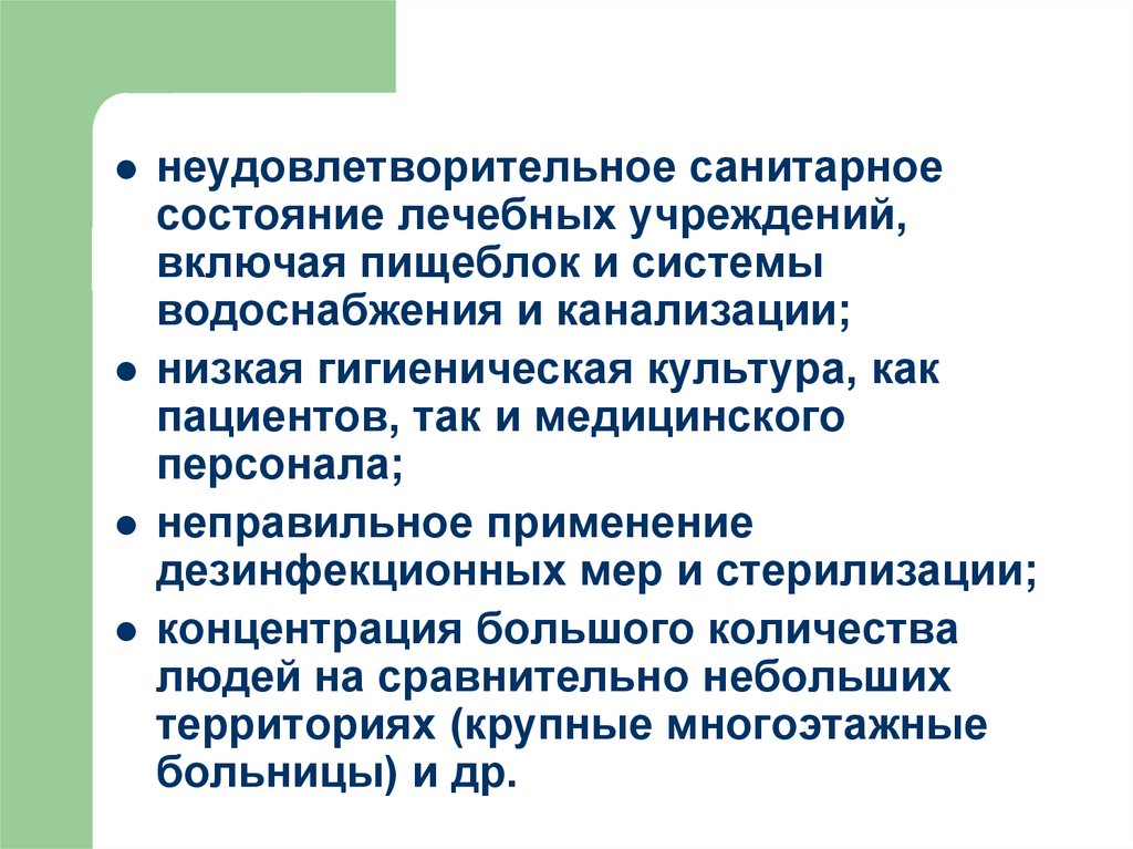 неудовлетворительное санитарноесостояние лечебных учреждений,
