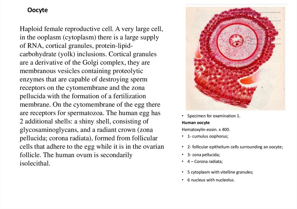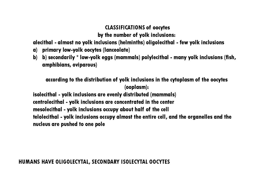 Oocyte classification. Place the human ovum in the classifications. The structure of