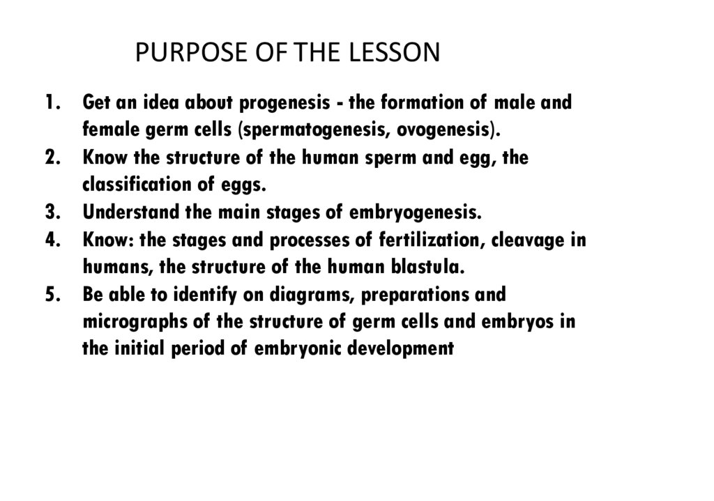 PURPOSE OF THE LESSON1. Get an idea about progenesis - the formation of male and