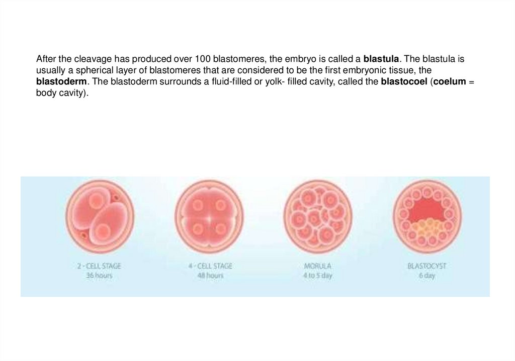 1 - Cleavage; 2 - morula; 3 - blastocyst; 4 - blastocyst