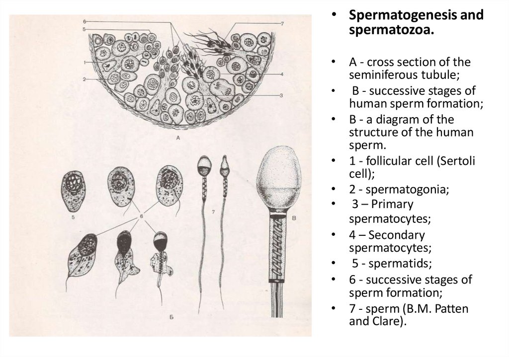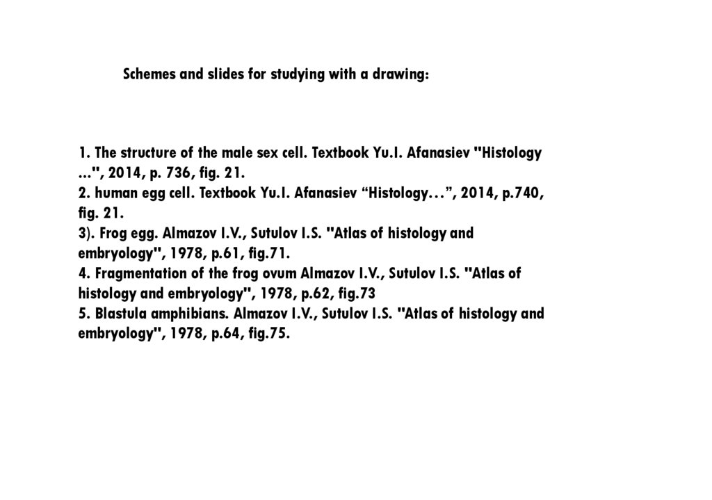 Schemes and slides for studying with a drawing:1. The structure of the male sex cell. Textbook Yu.I. Afanasiev "Histology