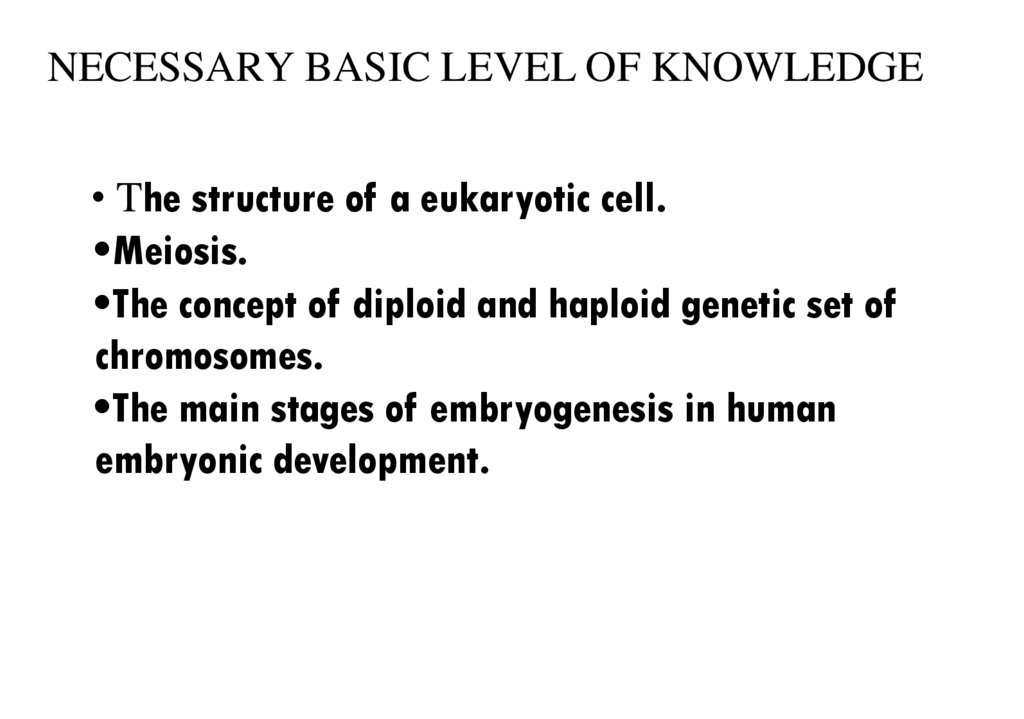 NECESSARY BASIC LEVEL OF KNOWLEDGE• The structure of a eukaryotic cell.