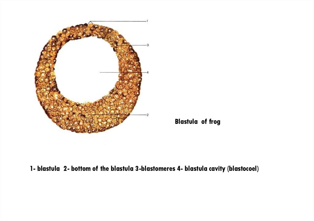 Blastula of frog1- blastula 2- bottom of the blastula 3-blastomeres 4- blastula cavity (blastocoel)