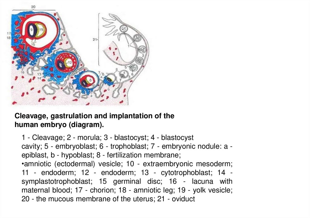 Cleavage, gastrulation and implantation of thehuman embryo (diagram).