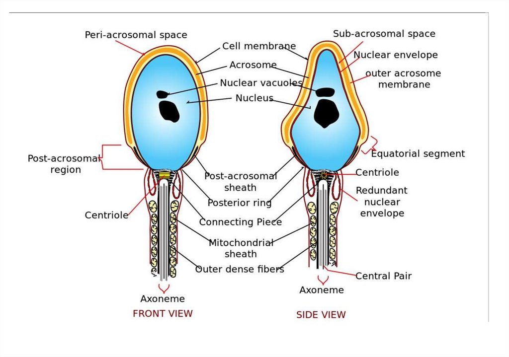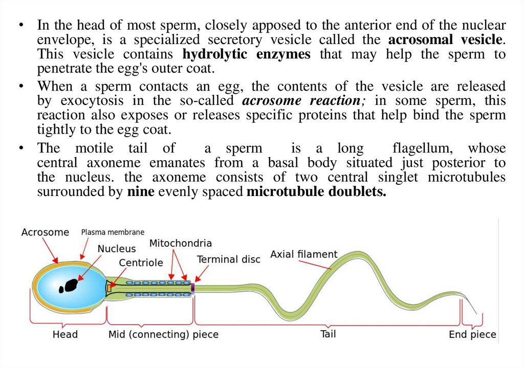 • In the head of most sperm, closely apposed to the anterior end of the nuclearenvelope, is a specialized secretory vesicle called the acrosomal vesicle.
