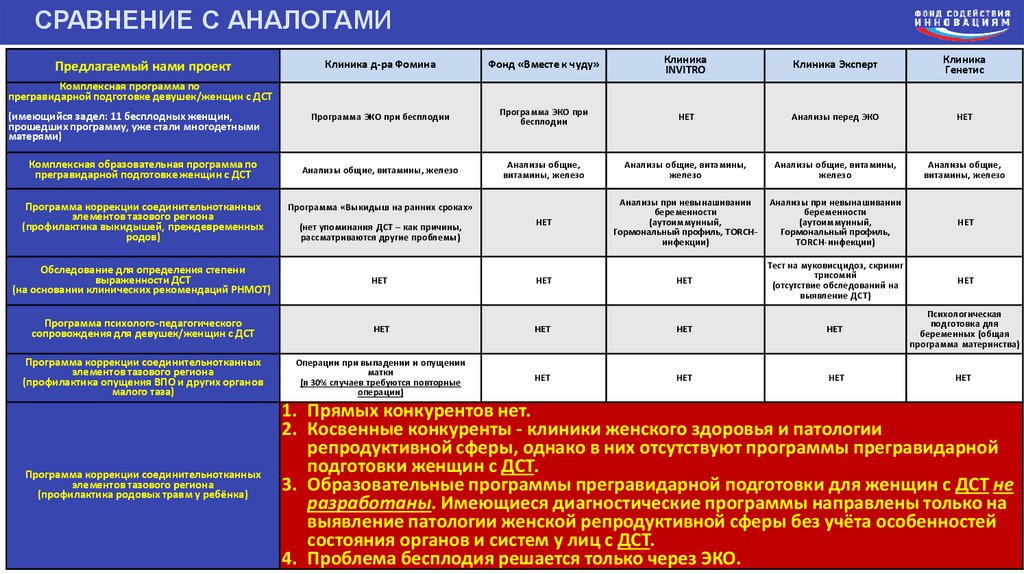 инновационных проектов схожей тематики: