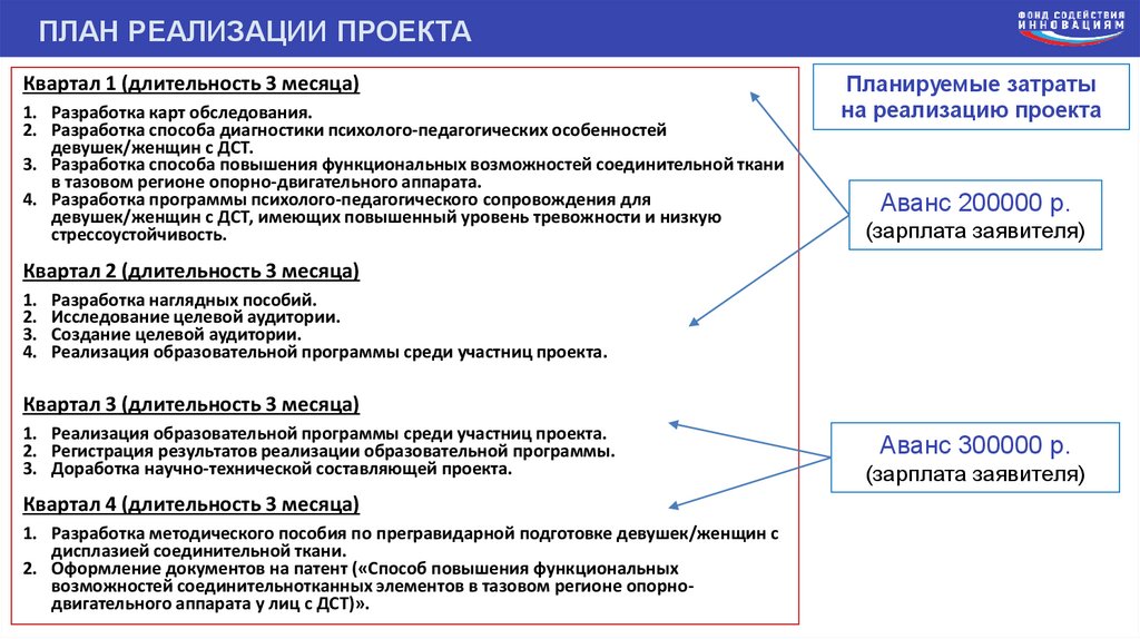 ПЛАН РЕАЛИЗАЦИИ ПРОЕКТАКвартал 1 (длительность 3 месяца)