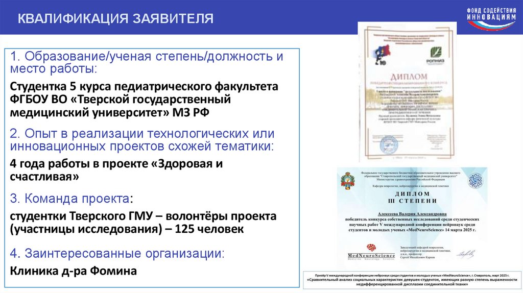 КВАЛИФИКАЦИЯ ЗАЯВИТЕЛЯ1. Образование/ученая степень/должность и