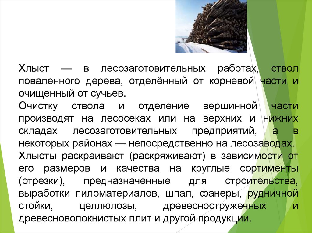 Хлыст — в лесозаготовительных работах, стволповаленного дерева, отделённый от корневой части и