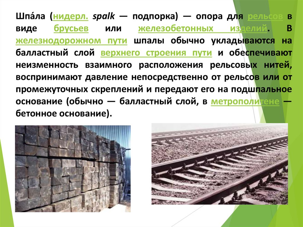 Шпа́ла (нидерл. spalk — подпорка) — опора для рельсов ввиде