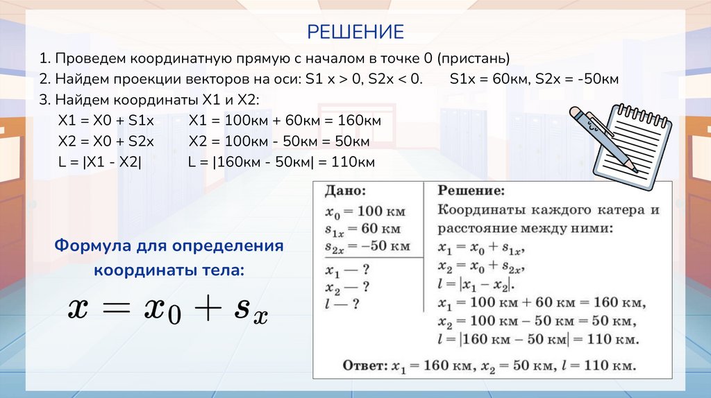 РЕШЕНИЕ1. Проведем координатную прямую с началом в точке 0 (пристань)