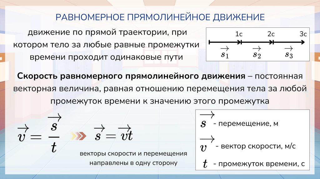 РАВНОМЕРНОЕ ПРЯМОЛИНЕЙНОЕ ДВИЖЕНИЕдвижение по прямой траектории, при