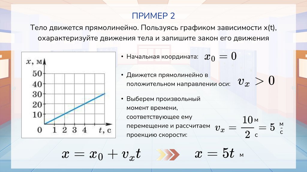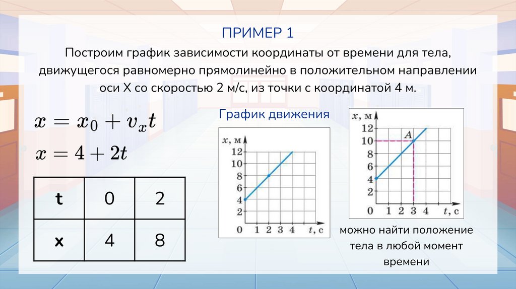 ПРИМЕР 1Построим график зависимости координаты от времени для тела,