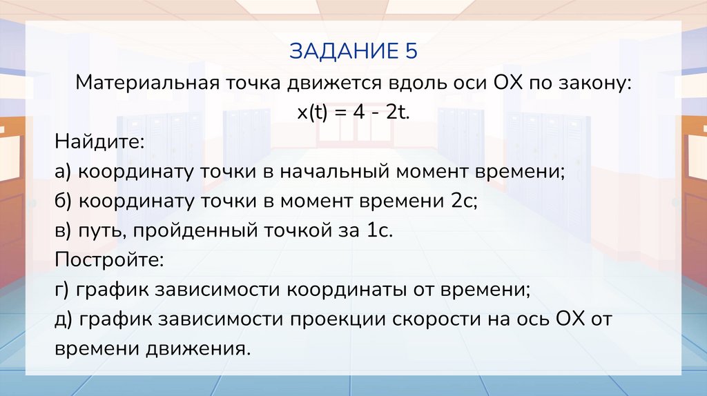 ЗАДАНИЕ 5Материальная точка движется вдоль оси ОХ по закону: