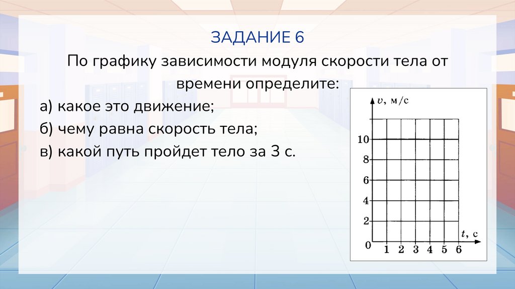 ЗАДАНИЕ 6По графику зависимости модуля скорости тела от