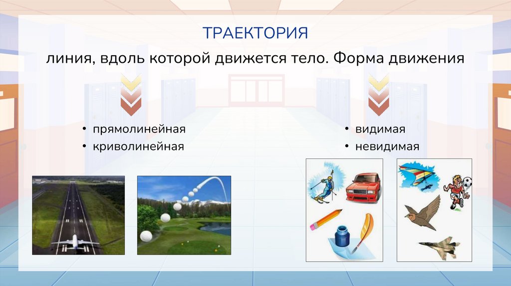 ТРАЕКТОРИЯлиния, вдоль которой движется тело. Форма движения