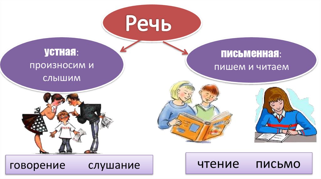 Какие виды речи иллюстрируют рисунки?Подберите к рисунку нужную подпись.