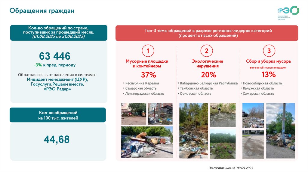 Топ-3 темы обращений в разрезе регионов-лидеров категорий