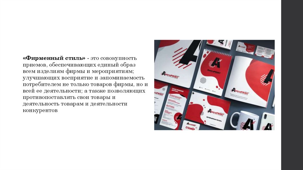 «Фирменный стиль» - это совокупностьприемов, обеспечивающих единый образ