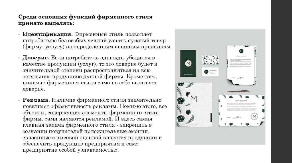 Среди основных функций фирменного стиляпринято выделять: