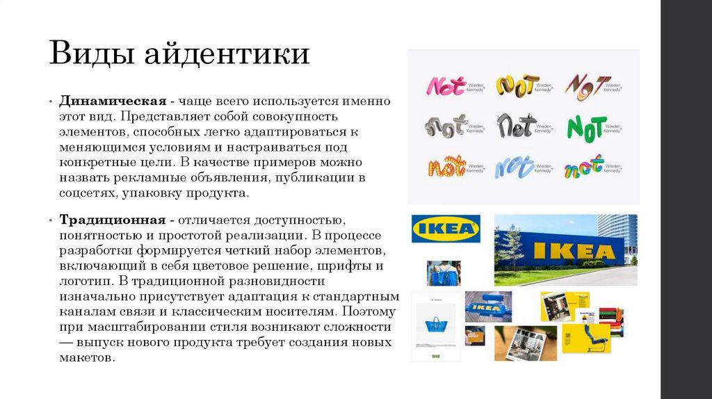 Виды айдентики• Динамическая - чаще всего используется именно