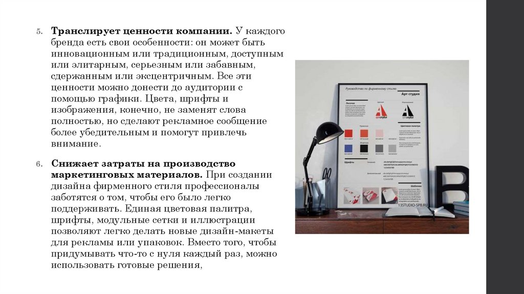 маркетинговых материалов. При создании