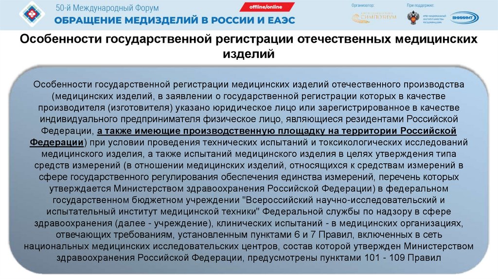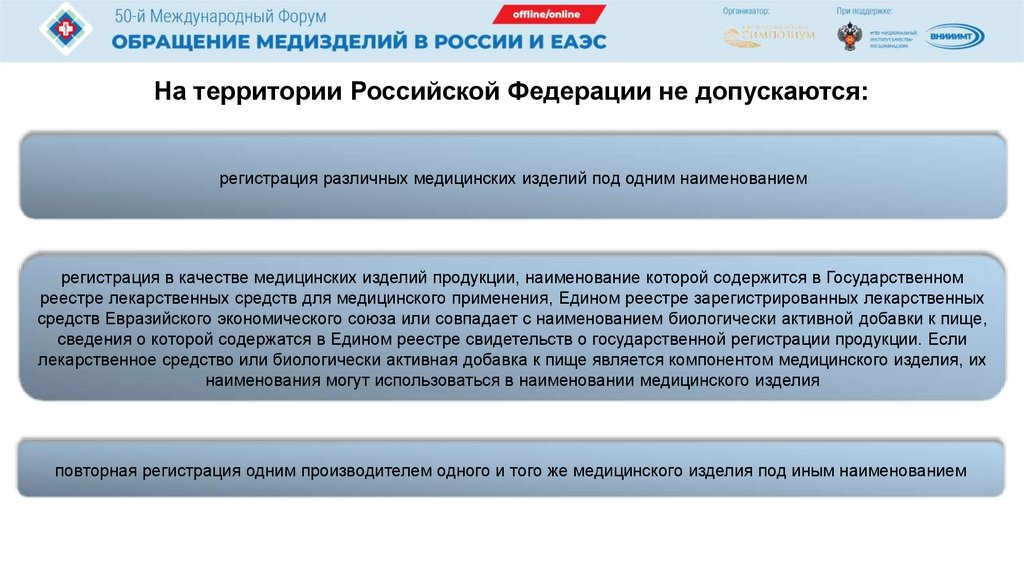 На территории Российской Федерации не допускаются:регистрация различных медицинских изделий под одним наименованием