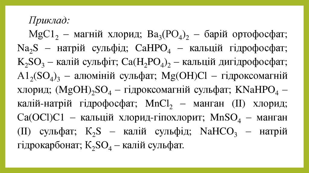 Наприклад: MgO – магній оксид, Na2O – натрій оксид.