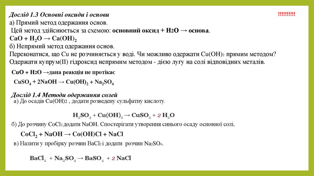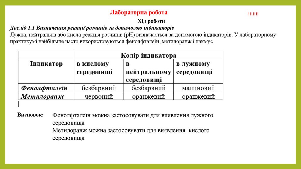 лабораторними методами. Опанувати методику складання рівнянь реакцій нейтралізації.