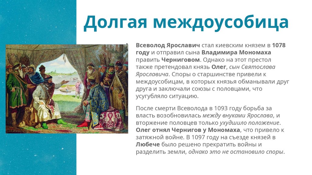 Долгая междоусобицаВсеволод Ярославич стал киевским князем в 1078