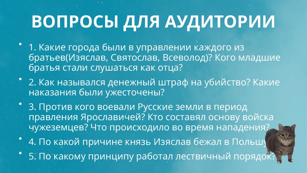 ВОПРОСЫ ДЛЯ АУДИТОРИИ1. Какие города были в управлении каждого из