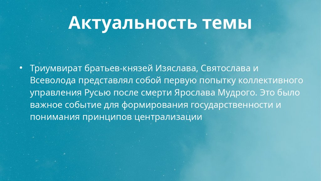 Актуальность темыТриумвират братьев-князей Изяслава, Святослава и