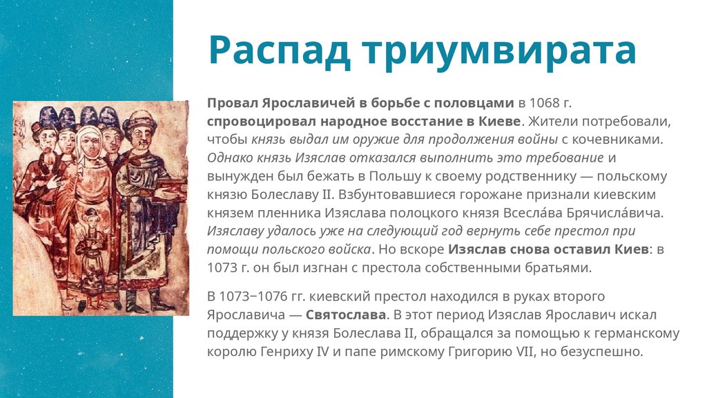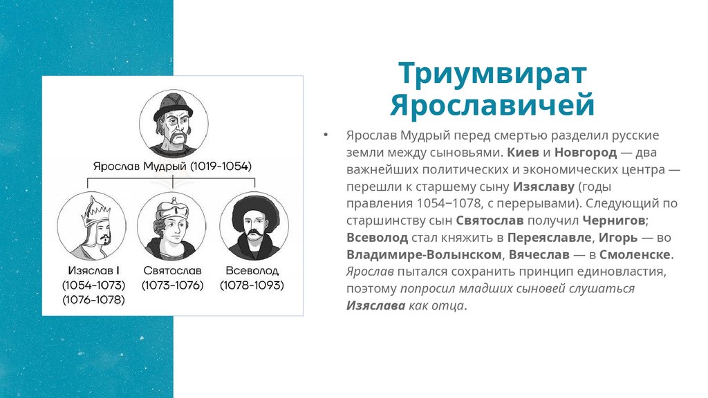 Русь при Ярославичах: триумвират Изяслава, Святославаи Всеволода.