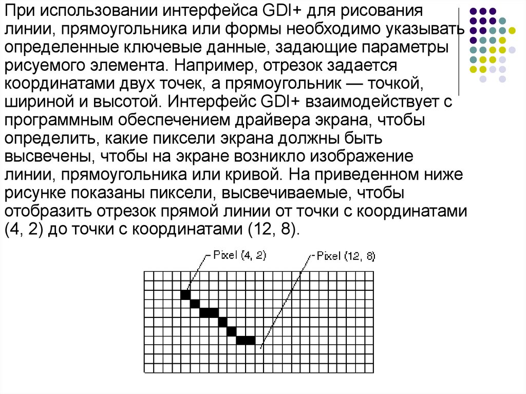 Класс Graphics реализует в себе как свойстваконтекста отображения, так и инструменты,