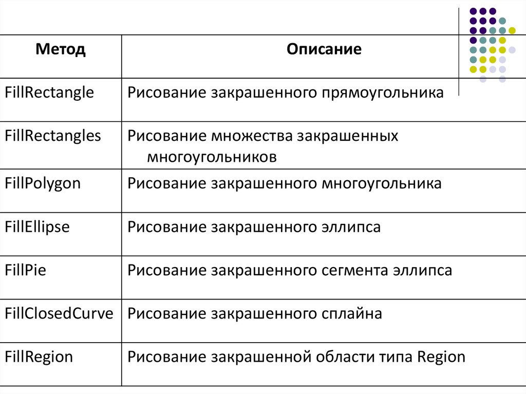 Внутренняя область окна и замкнутыхгеометрических фигур может быть закрашена при