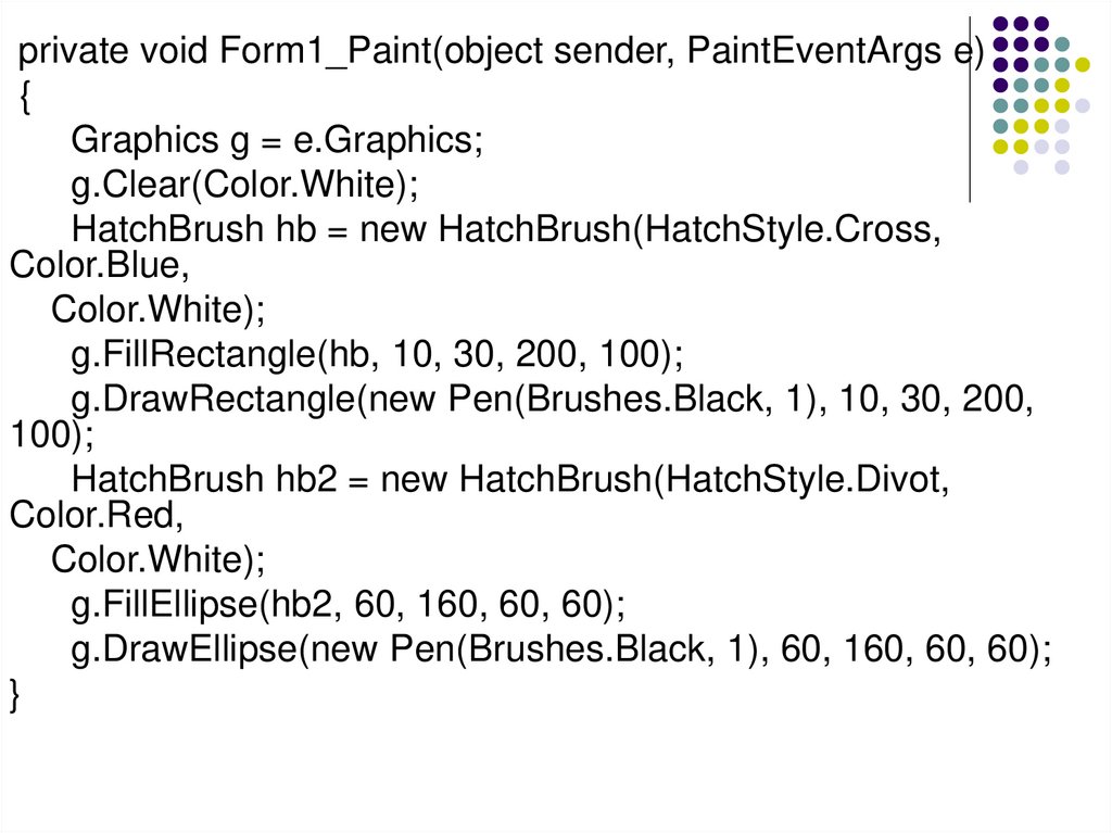 HatchBrush hb2 = new HatchBrush(HatchStyle.Divot,