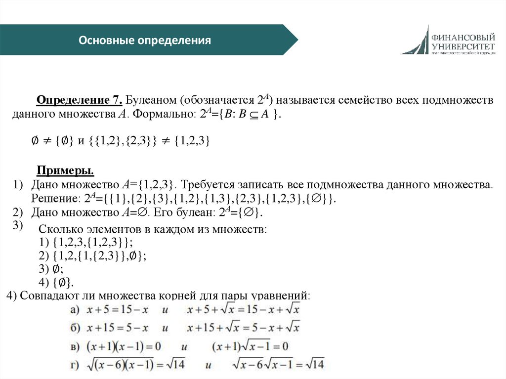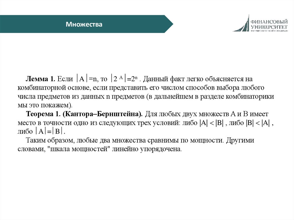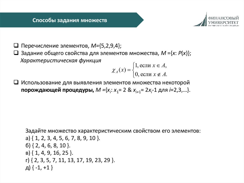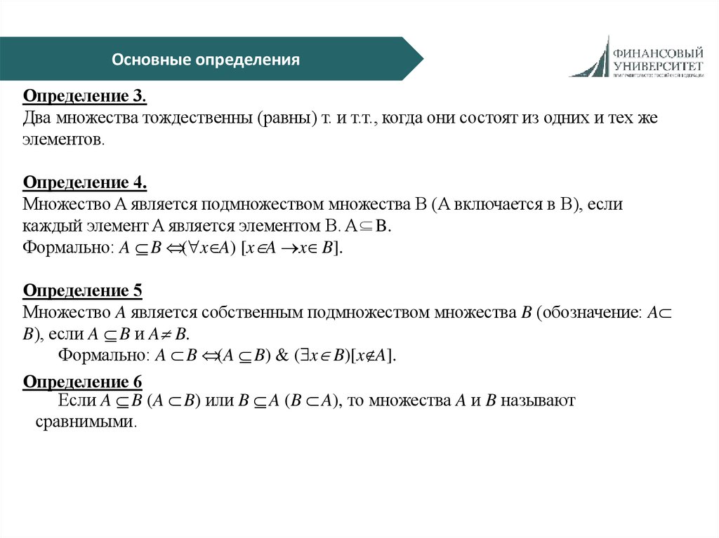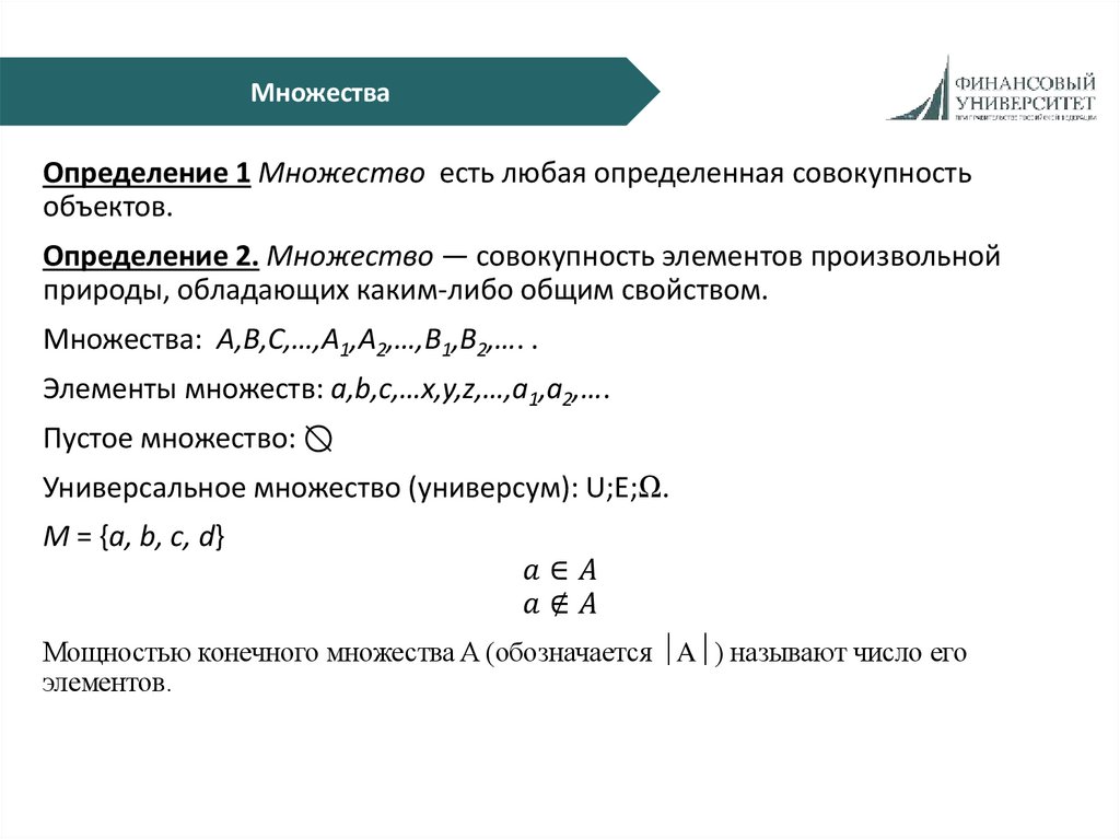 МножестваОпределение 1 Множество есть любая определенная совокупность