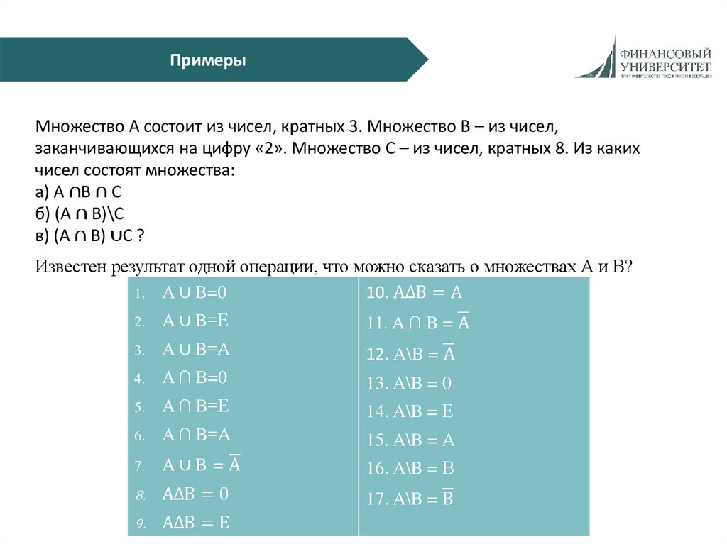 Множества: A,B,C,…,A1,A2,…,B1,B2,…. .