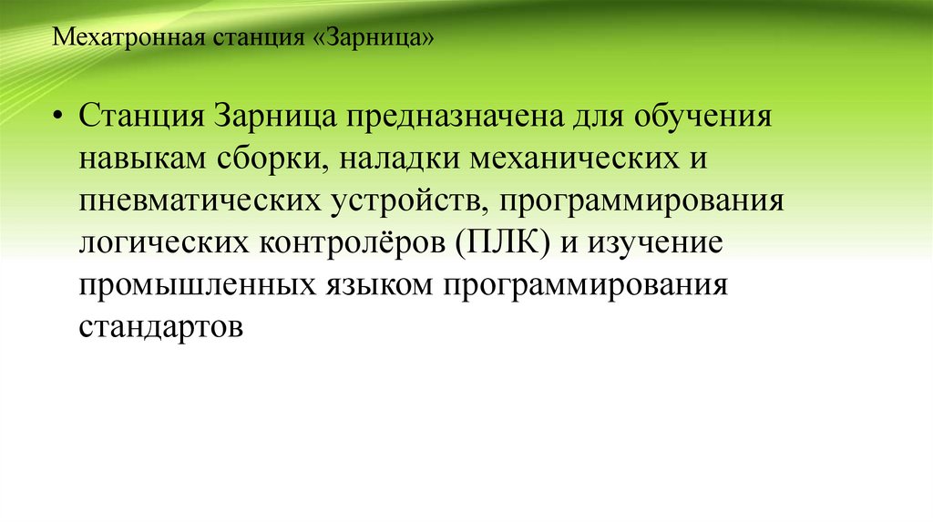 Мехатронная станция «Зарница»• Станция Зарница предназначена для обучения